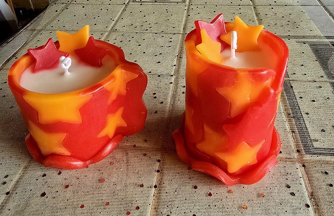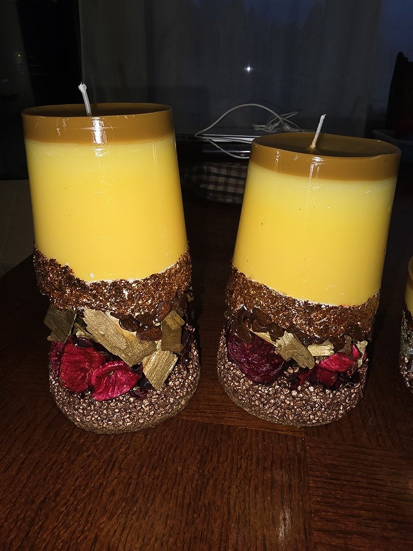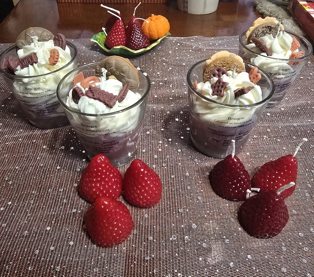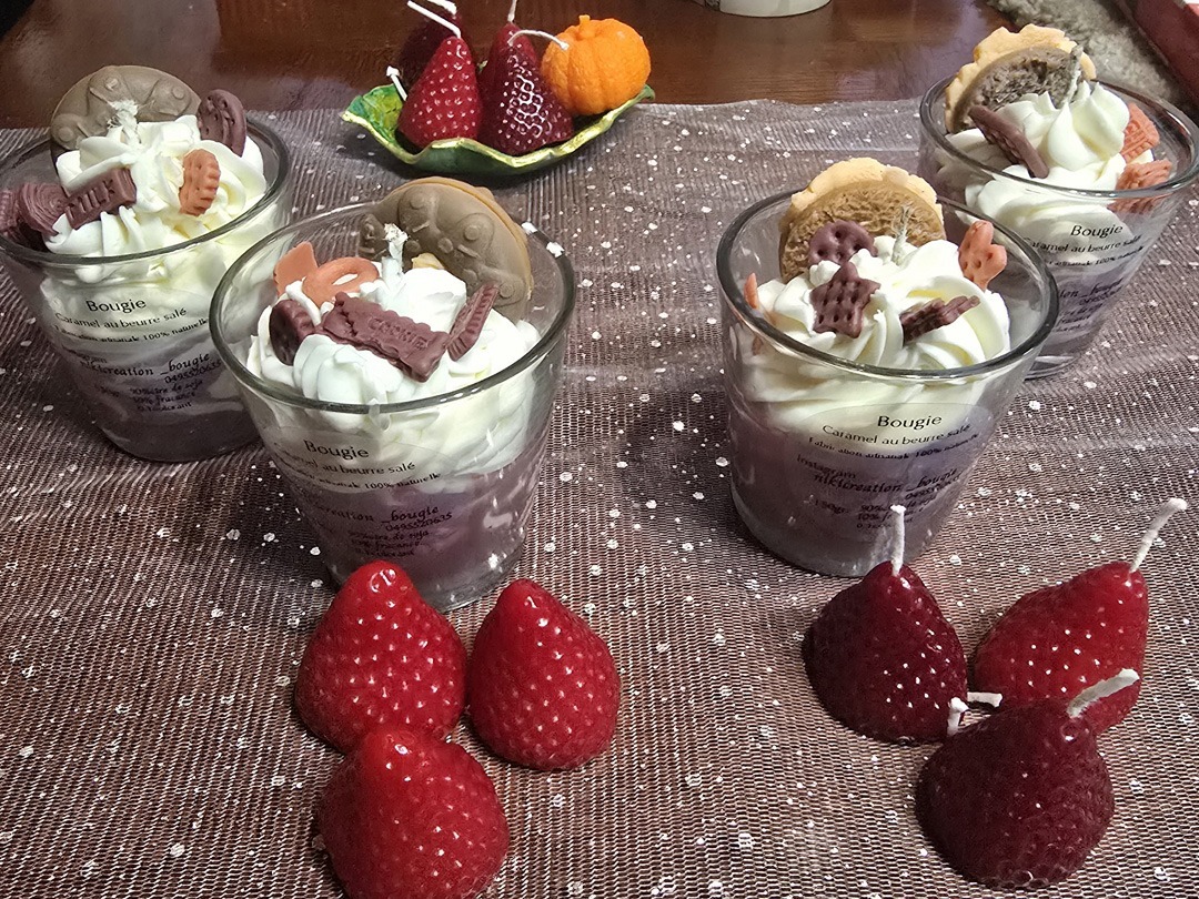 Chaque pièce est conçue comme une petite œuvre décorative : j’utilise différents types de cires, des fleurs séchées, des pétales, des paillettes, ainsi que des formes et des couleurs originales.