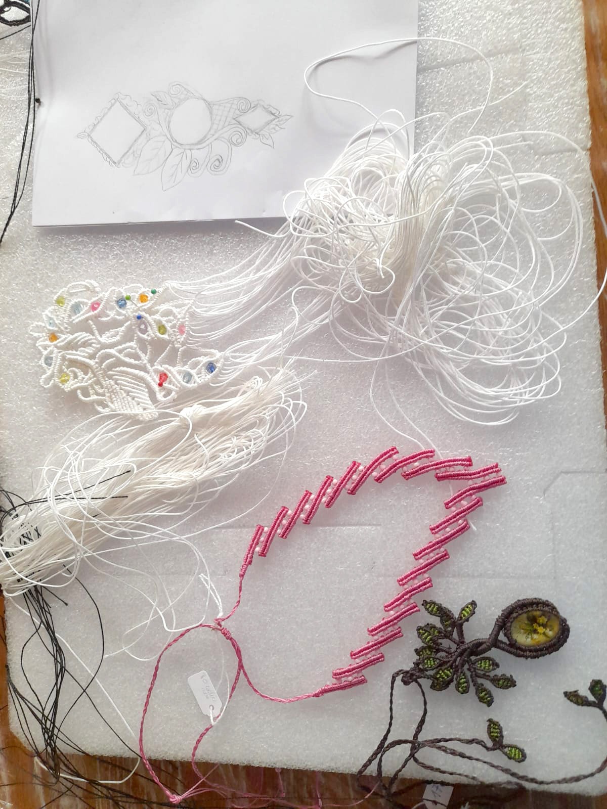Micro macramé – dentelle au fuseau – boules de Noël – gnomes