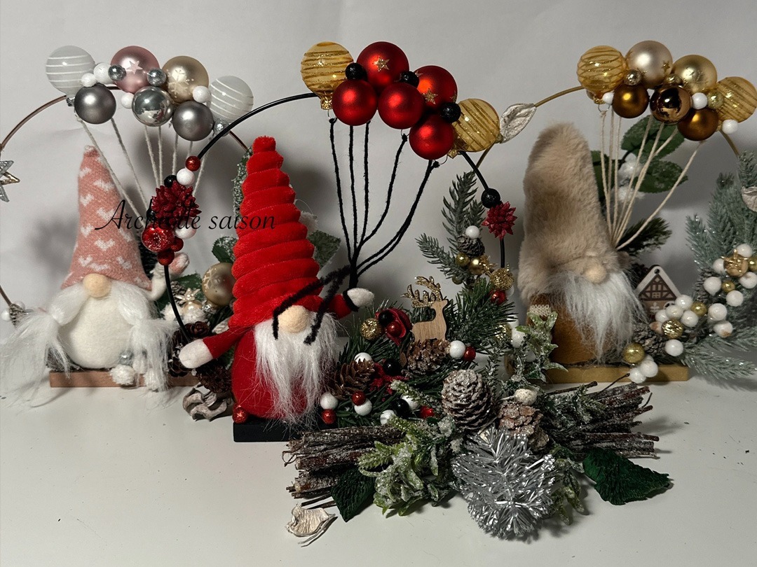 Ce sont des créations uniques. Les montages sont faits à la main. Laissez les gnomes voyager fièrement dans votre décoration de Noël. Ils égayeront vos chemins de table, vos cheminées avec éclats. Petit arche – Grande Arche