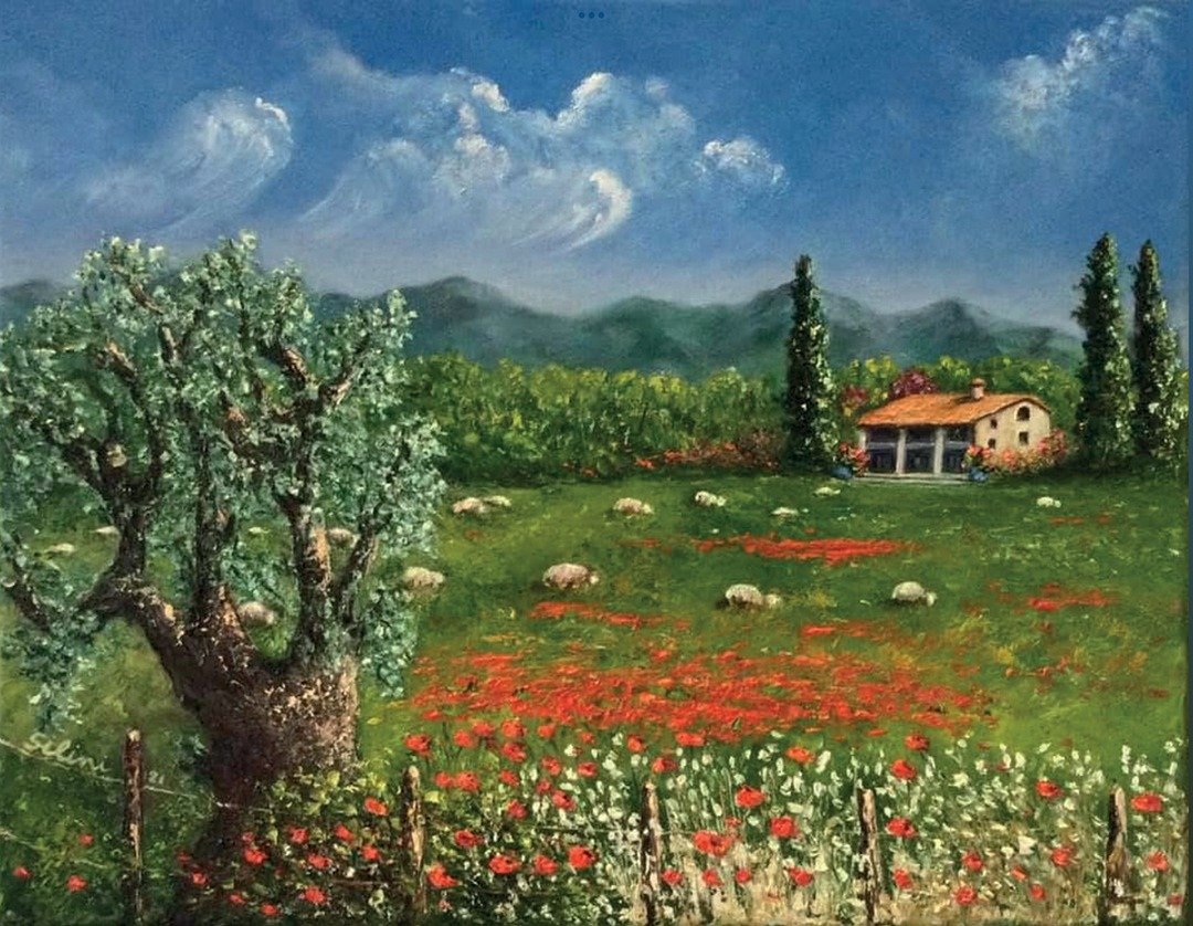La majorité des titres de mes tableaux sont en anglais parce que je les ai réalisés aux États Unis, où j’ai vécu 54 ans. Les titres en italien viennent du fait que je suis née en Italie, dont je me suis inspirée au cours de mes nombreuses visites. J’ai beaucoup voyagé dans plusieurs pays où j’ai pris des photos que j’ai peintes ensuite…
